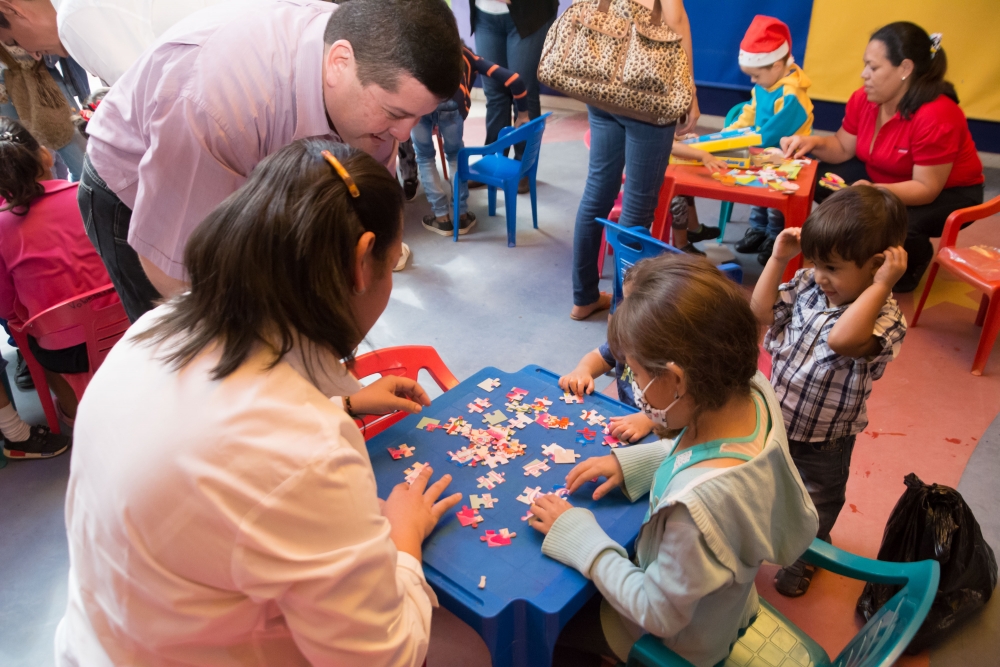 Apropiados del lema “Contigo sumamos uno más” la Gerencia de Tecnología de Información y Comunicaciones, conjuntamente con la Gerencia de Planificación Estratégica, bajo la dirección de la Coordinación de Asuntos Públicos, desarrollamos la primera jornada del Voluntariado Corporativo. Ésta consistió en recolectar entre el personal de los departamentos involucrados acuarelas, pinceles, creyones, libros de pintar, témperas, marcadores, rompecabezas y cuentos coloreables, para compartir una mañana de artes plásticas y música infantil con los niños atendidos por el Hospital de Especialidades Pediátricas de Maracaibo.