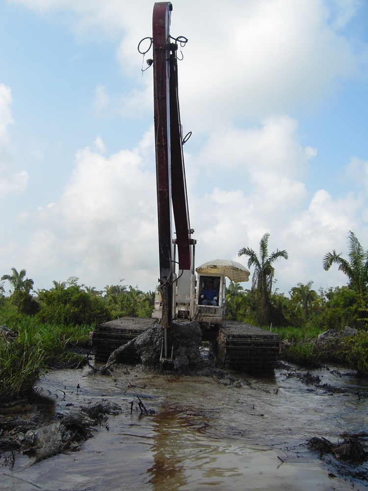 Equipos de movimiento de tierra, Equipos de pantano, equipos de control y recolección de crudo en agua y tierra, gabarra plana y remolcador.