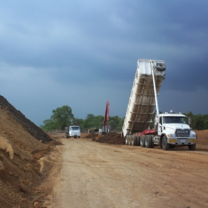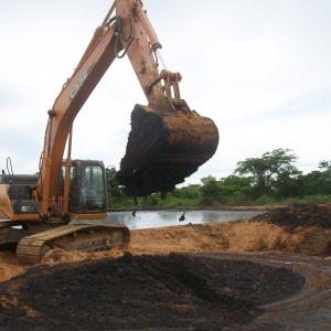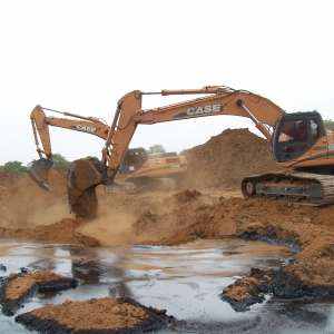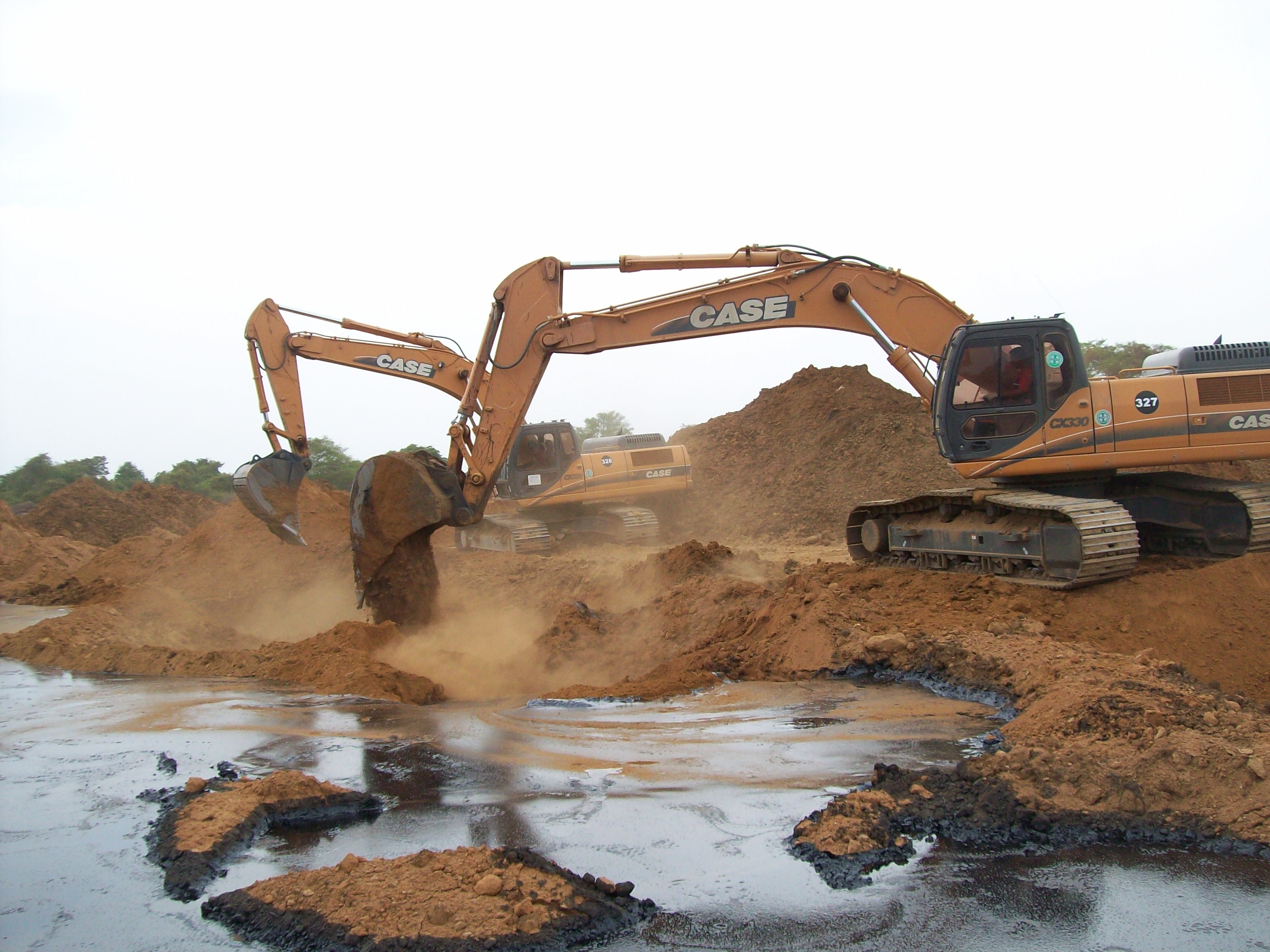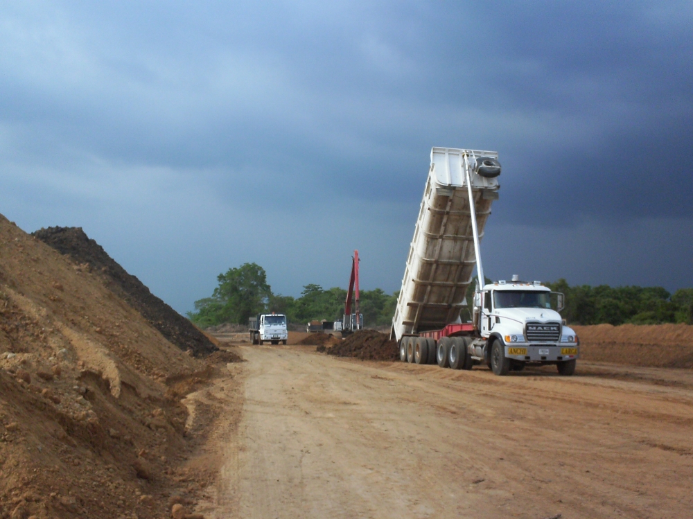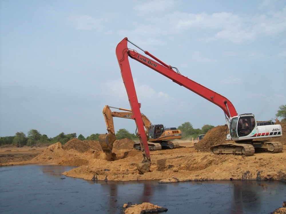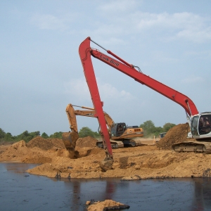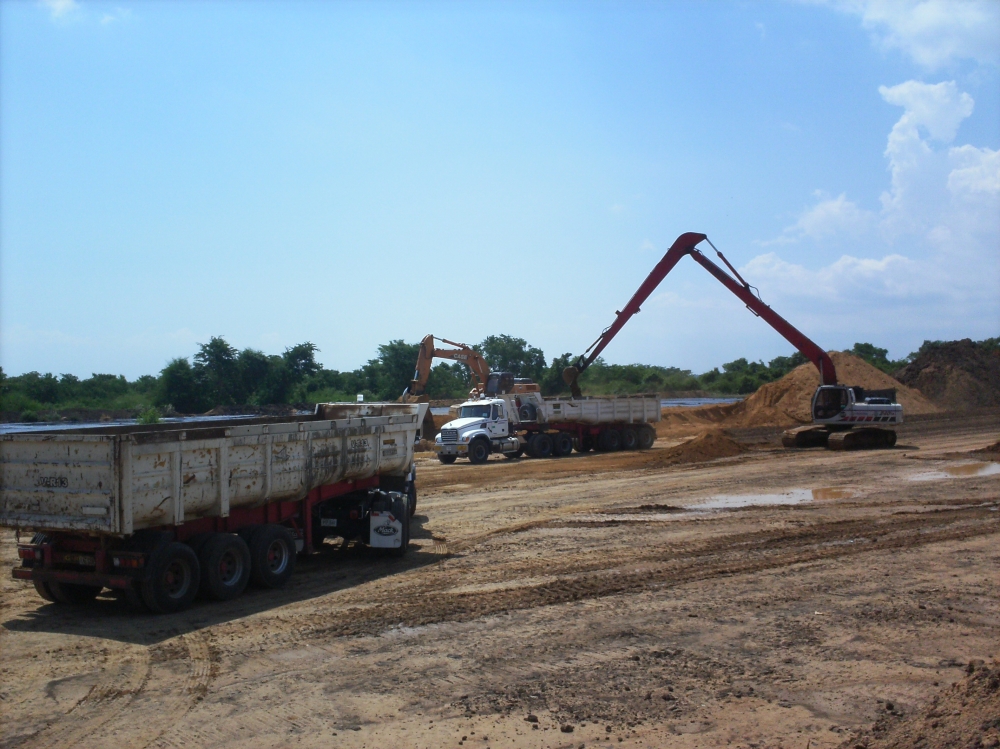 Excavador de largo alcance, excavador anfibio de largo alcance, barrera de contención, lancha C/MFB, camiones Tolva de 25m3, camiones volteo y equipos de movimiento de tierra.