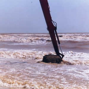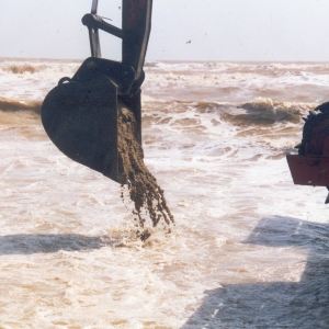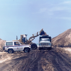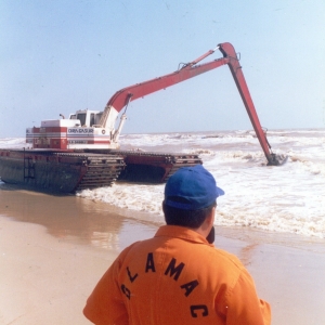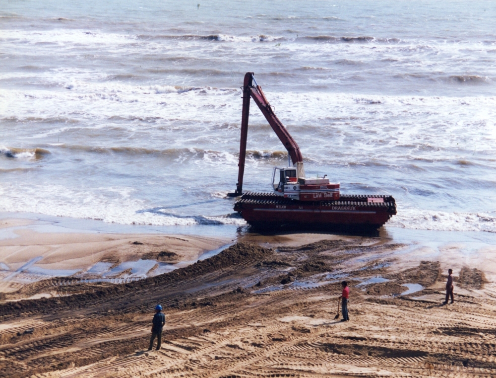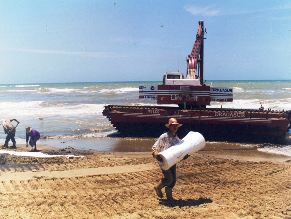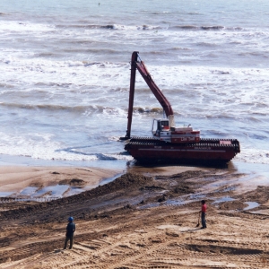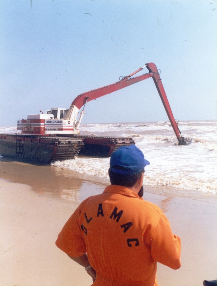 Excavador de largo alcance, excavador anfibio de largo alcance, barrera de contención, lancha C/MFB, camiones Tolva de 25m3, camiones volteo y equipos de movimiento de tierra.